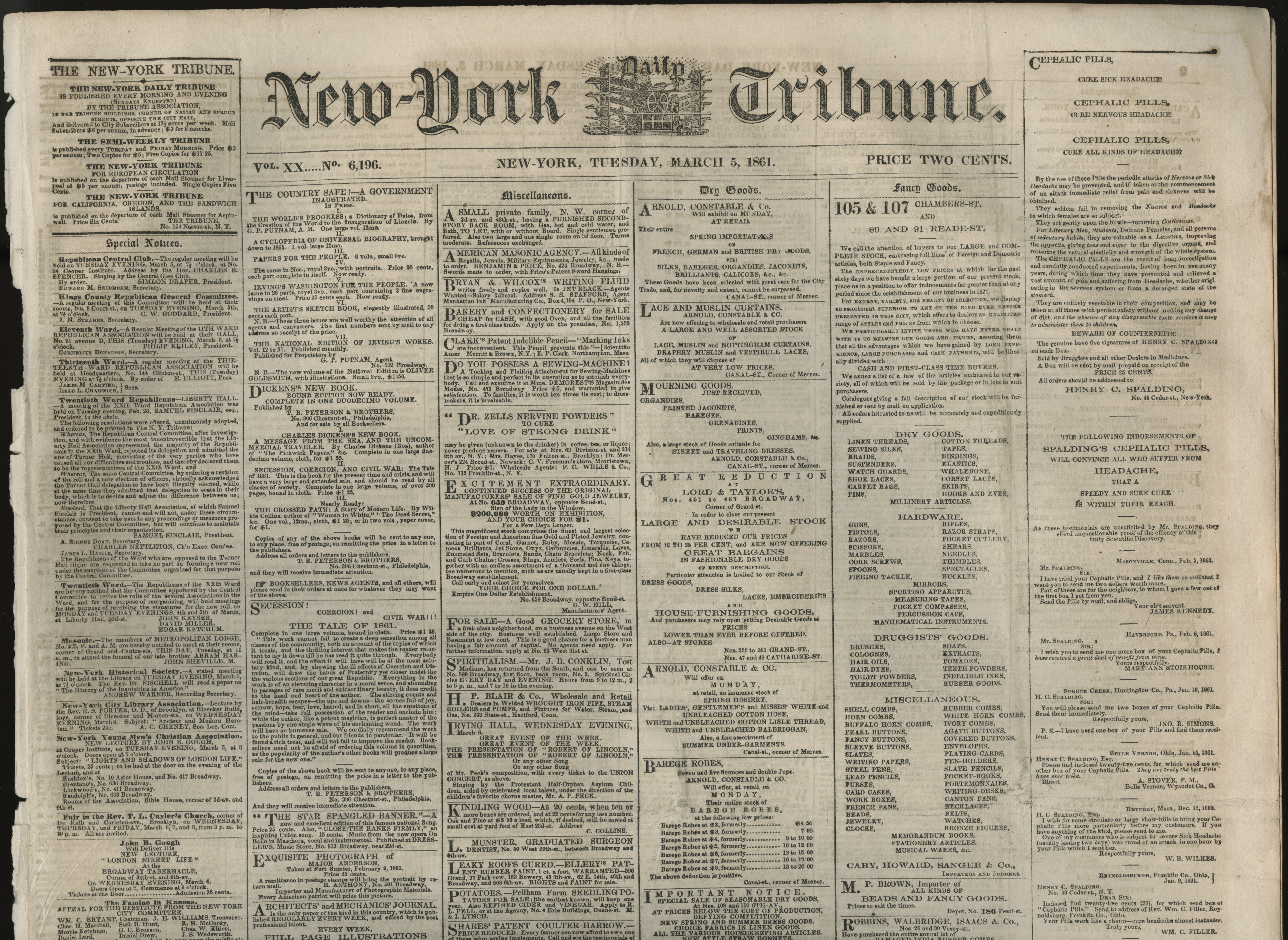 Citation: New York Daily Tribune. New York, 5 March 1861. Gift of Steven and Susan Raab