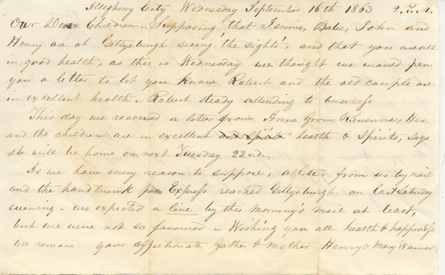 Citation: Alexander Biddle (1819-1899), autograph letter signed to Julia Williams Rush Biddle, 19 September 1863. Rush IV:30:35