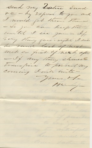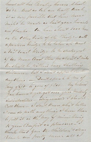 Our Dear Children About three hours ago your mother, and father, saw Aunt Betty, Robert, Anne, and their two children off, on the Rail Road, from this city for Ravenna, they will arrive there by 5 ½ P.M. if no accident happens—Robert will be back tomorrow evening—and will live with us until the family returns—what stay they will make we cannot tell—they had a very pressing invitation to go; Henry told us he was going to see you, and also to purchase a Sword, Sword belt, & sash for him, and forward them to you—the sword we suppose you will have by this time, as Mr. McFadden was to send it by Adams Express, the other things we are waiting for a letter from Henry before we send them, as he stated in his letter it might be next week before he would arrive in Gettysburgh—we hope Jennie & Babe had arrived safe and that they are well—we long to hear how they are