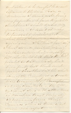 We are still in the same place.  I have done no duty as yet.  I walk towards evening but keep as much as I can out of the sun in the tent in daytime.  Three brigades of the Sixth Corps are said to across the river in position but I think our movements have no object in view but to keep the enemy on the alert and to make them show themselves in force.  my health has not been any the worse but I do not feel as if I was much invigorated and intend to be careful to avoid exposure to the sun.  To day or to morrow I think will bring my paper back from Reynolds and then I shall know my position.  I trust it may be favorably Considered and that I may again rejoin you.  I almost feel wife I had done a positive wrong in thus entangling myself but who Could tell that the Govt would so act.  To day has been pretty hot, clear and bright weather but the whole face of the Country is a waste with remnants of Camps in every direction — our little regiment does not alter much in numbers and every day its weakness from some Cause or other is more and more manifest.