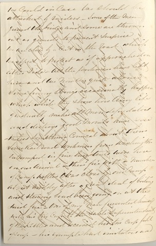 Some of the men guard the bridge and some are thrown out as guards to prevent surprise. We are close by a cut in the road which we expect to protect us if approached on either side. All the workmen have left here and we are now quite alone. Some funny things occasionally happen which while they show how army life gradually makes all men [depredators?] and destroys good morals have nevertheless something comical about them. Some railroad workmen from Washington encamped in five large tents were here on our arrival. Their fire with a number of camp kettles was close by our camp…about midday after a great deal of boiling and stewing had been going on at the said fire…one of my men presented himself with his tin cup to the sable superintendent of the kettles and received his tin cup full of soup…his example had imitators and it is said that in the other camp there was a short supply at meal time. But I heard no such complaint in my camp. I presume the chief cook will hence after take note of who are the recipients of his preparations. I also was told that one of my men coming along with a board on his shoulder passed an axe sticking in a log of wood… stopping for a moment he gave it a jerk and passed on to his own quarters and felicitated himself with the idea he had acquired the axe but it was soon ascertained that the axe had been previously stolen from one of the companies of my regiment who claimed and regained it. I heard also that some of my men found a negro in charge of three bales of hay and so frightened him that the hay now exists in the form of beds but the place where it was has no sign of it or the negro who withdrew in a hurry.